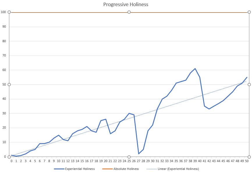 I think this graph, if it portrays the Bible’s teaching on holiness correctly, shows the importance of keeping short accounts with the Lord. Continuously responding to the Lords urging and recognizing sin in our lives will produce the type of growth in holiness seen in the first 20 yrs of the believer typified on the graph.