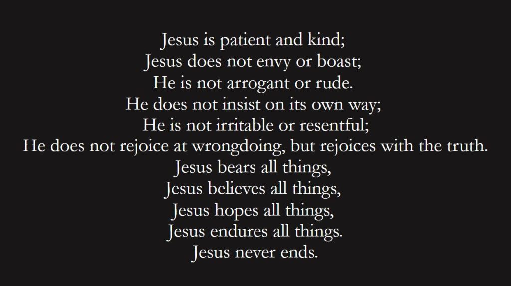 It has been years since a brother once instructed me to replace the term “love” with “Jesus” to get a better understanding of who He is.