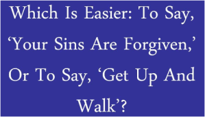 Which is easier, to say, ‘Your sins are forgiven you,’ or to say, ‘Rise and walk’? But that you may know that the Son of Man has authority on earth to forgive sins”–he said to the man who was paralyzed–“I say to you, rise, pick up your bed and go home.” – Luke 5:23-24 ESV
