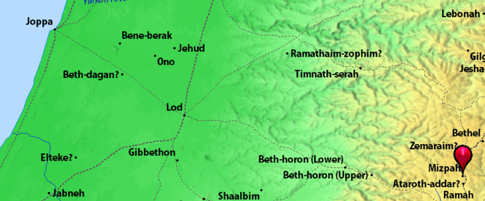 Ok Moab has a connection with David’s family, but what about Mizpeh? Why there, and where might it be?
