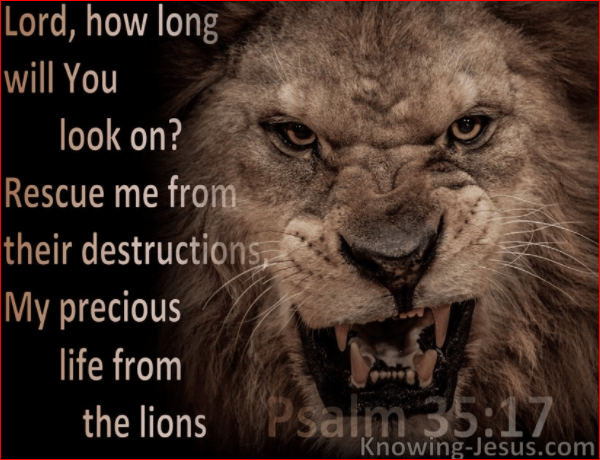 Psalm 35 17 How long, O Lord, will you look on? Rescue me from their destruction, my precious life from the lions! 18 I will thank you in the great congregation; in the mighty throng I will praise you.